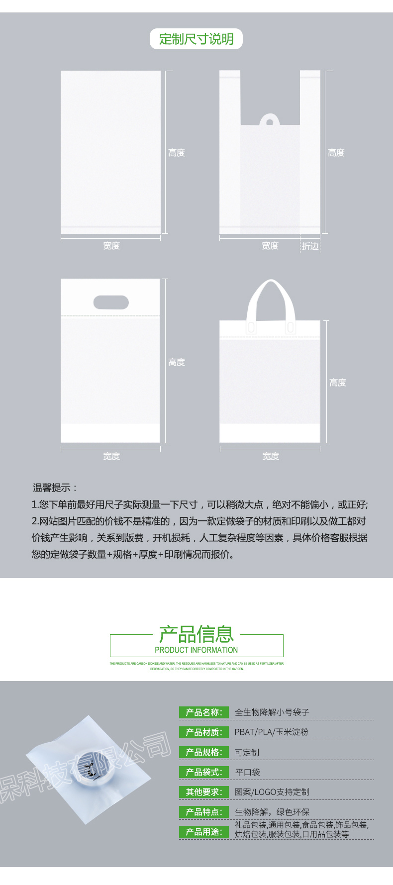 • 全生物降解小號(hào)袋子